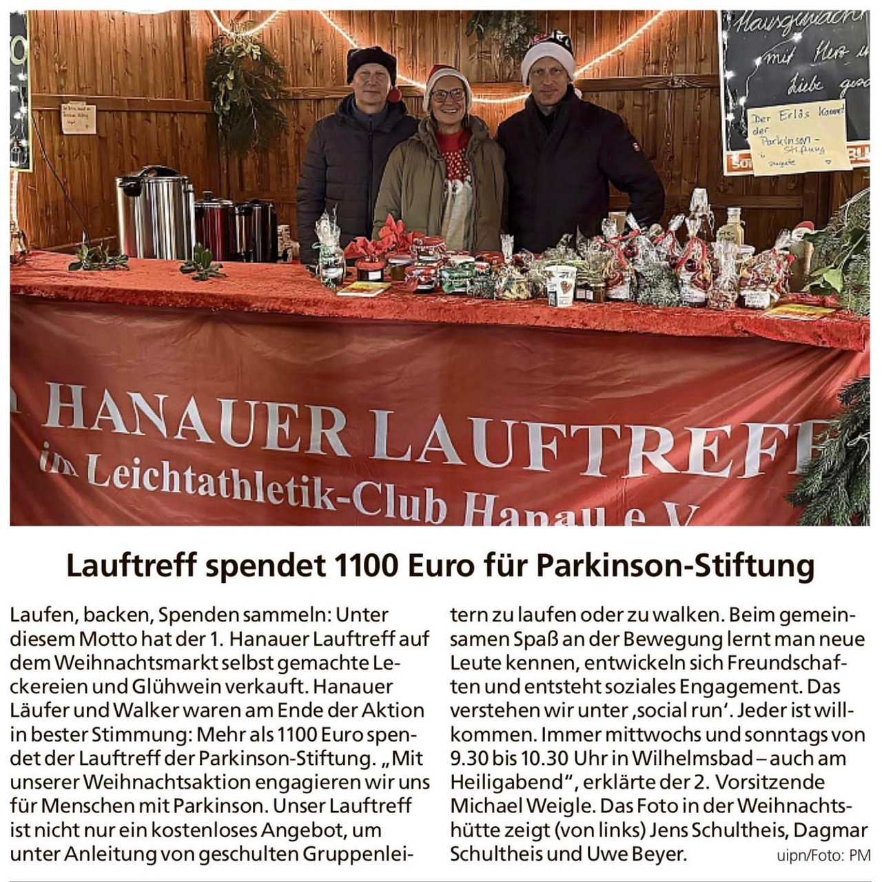 Lauftreff spendet 1100 Euro für Parkinson-Stiftung